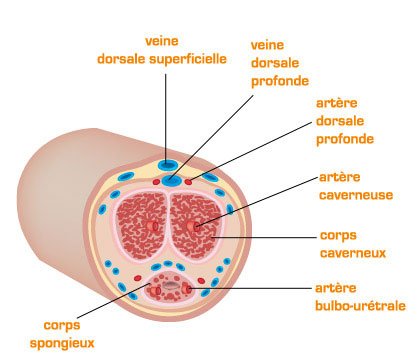 Ces corps s’étendent de la base de l’arbre jusqu’au gland. Les corps caverneux peuvent également s’engorger de sang à la suite de changements hormonaux durant les premiers stades de la puberté.